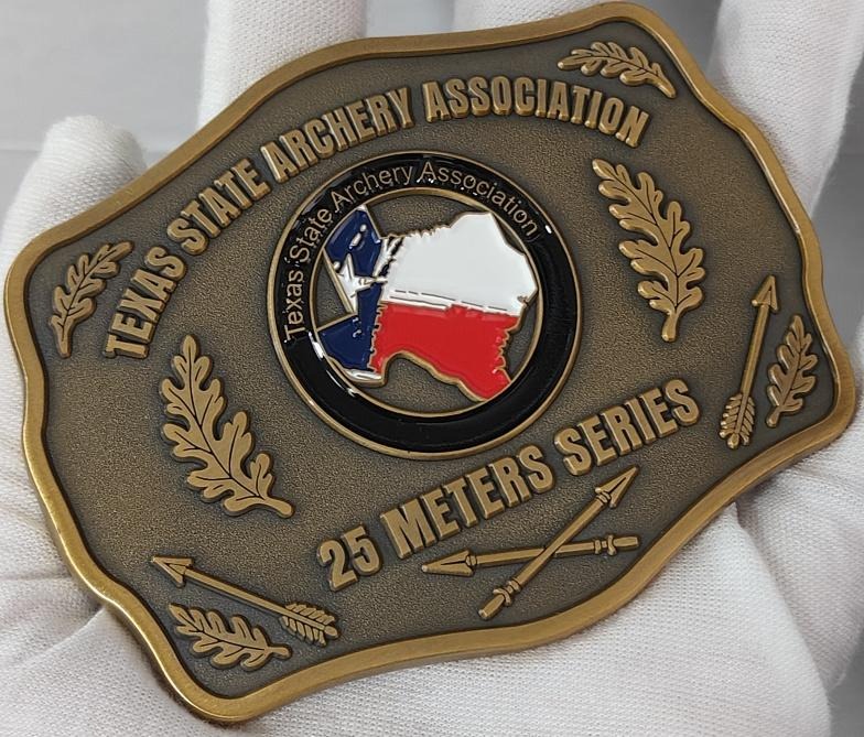Champions will receive a buckle and all podium finishers will receive a challenge coin (pictured below). All yeoman archers (Under 9 years) that complete the series will receive a challenge coin.